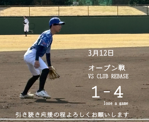 3月12日 オープン戦(VS CLUB REBASE)の結果